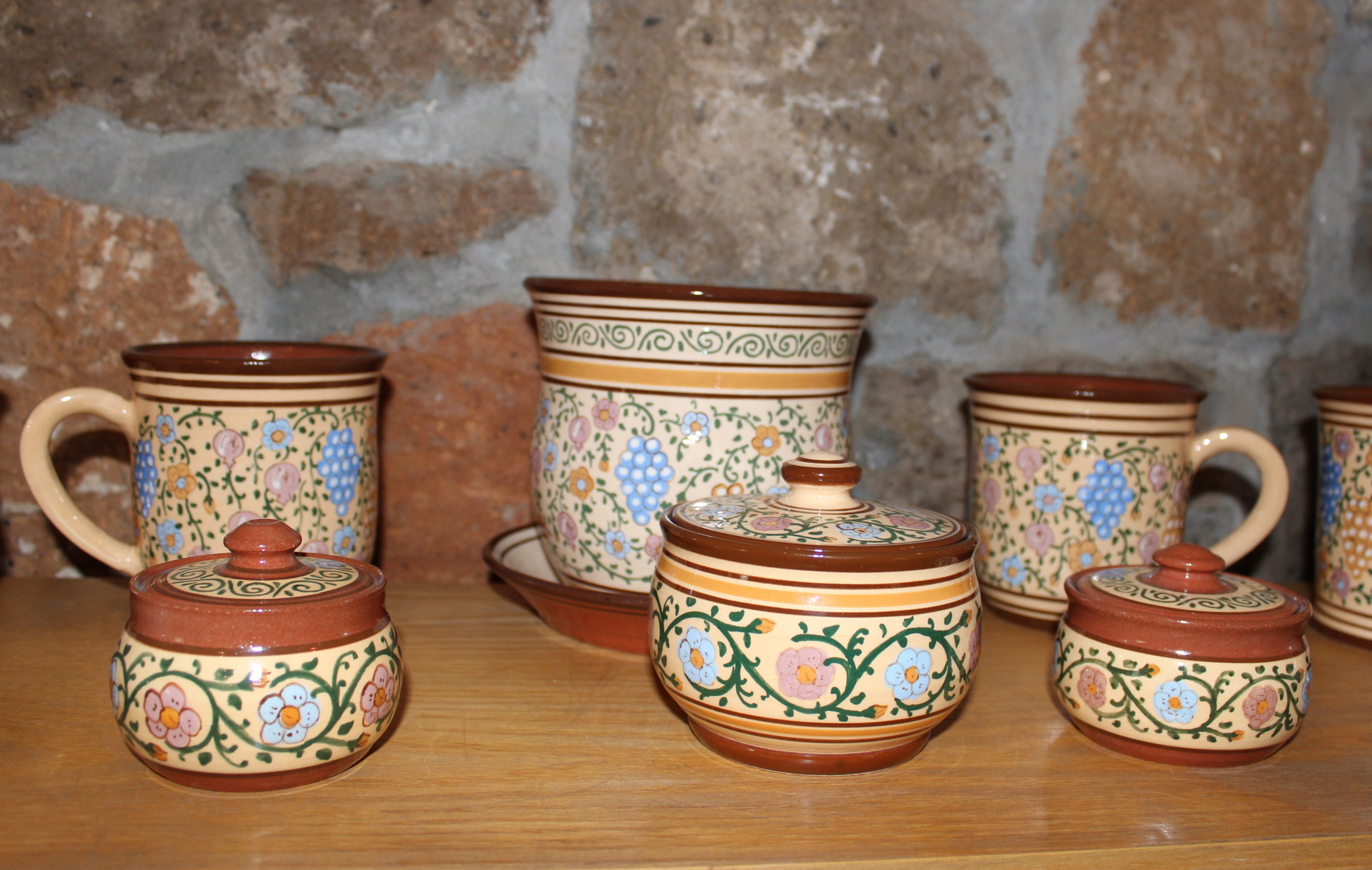 Today Villa Delenda hosts the showroom of the Veratsnund Art School, established in 1994 by Antonio Montalto, Director of Family Care in Armenia. Wonderful hand painted items range from tableware to home accessories such as table lamps and jewellery boxes.